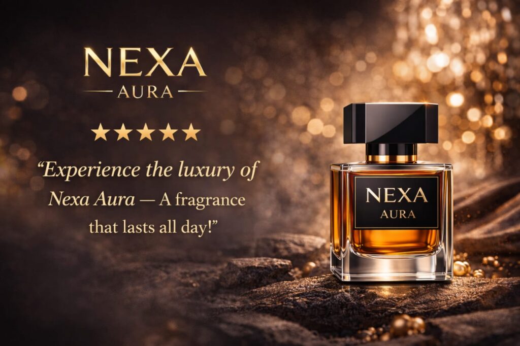 “Nexa Aura Elegant Fragrance is a luxurious, long-lasting perfume crafted for those who appreciate sophistication and style. Its exquisite blend opens with fresh top notes that awaken the senses, followed by a heart of delicate floral and subtle fruity essences, and settles into a warm, sensual base of musk and amber. Each note is carefully balanced to create a harmonious, signature scent that lingers beautifully throughout the day. Encased in a sleek, elegantly designed bottle, Nexa Aura not only delights the senses but also complements your personal style. Perfect for daily wear or special occasions, this fragrance embodies elegance, confidence, and timeless allure.”